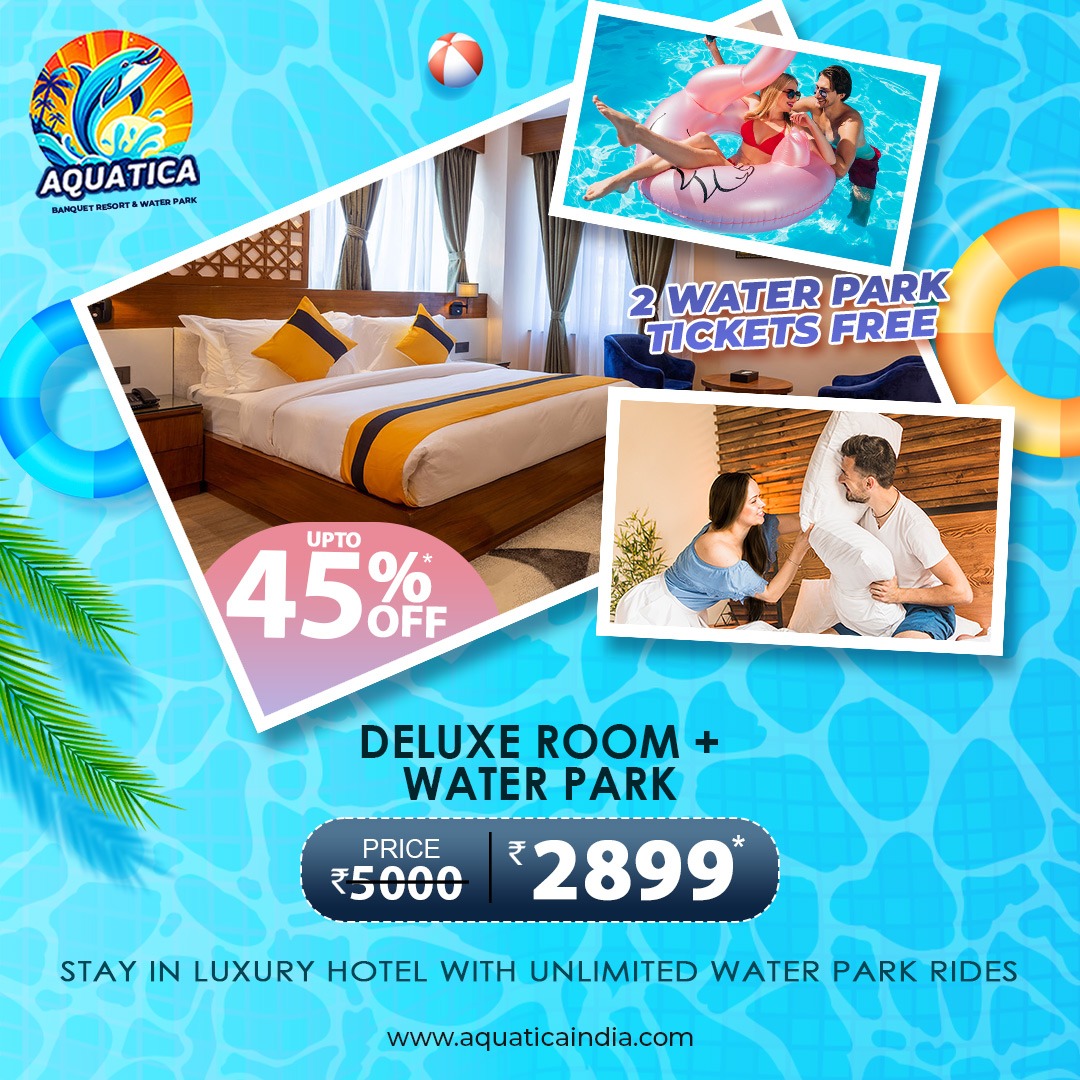 Experience the ultimate getaway with our exclusive Combo Offer at Aquatica Water Park & Resort! Indulge in a day of thrilling waterpark adventures for two, followed by a luxurious stay in our Deluxe Room. Dive into excitement with unlimited access to our exhilarating water rides, pools, and attractions, then retreat to the comfort of our elegantly appointed Deluxe Room for a restful night’s sleep. What’s more, enjoy a complimentary breakfast for two on the following day to start your morning off right. Whether you’re celebrating a special occasion or simply seeking a romantic escape, our Combo Offer promises an unforgettable experience filled with fun, relaxation, and cherished memories.